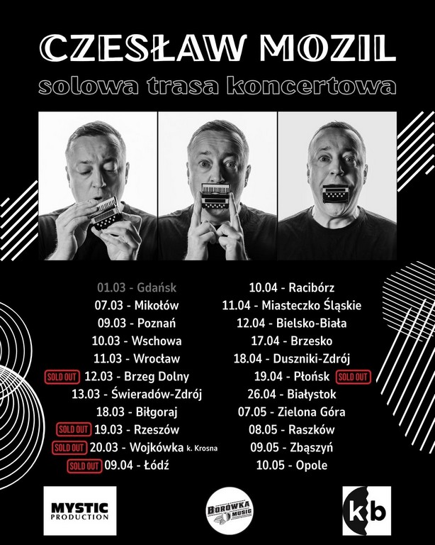 Czesław Mozil wraca do spotkań z publicznością i zapowiada serię koncertów z solowym repertuarem. W programie znajdą się zarówno utwory dobrze znane słuchaczom, jak i kompozycje z jego najnowszych wydawnictw. Artysta przygotował także niespodziankę w postaci premierowych piosenek, które powstają z myślą o kolejnym albumie.